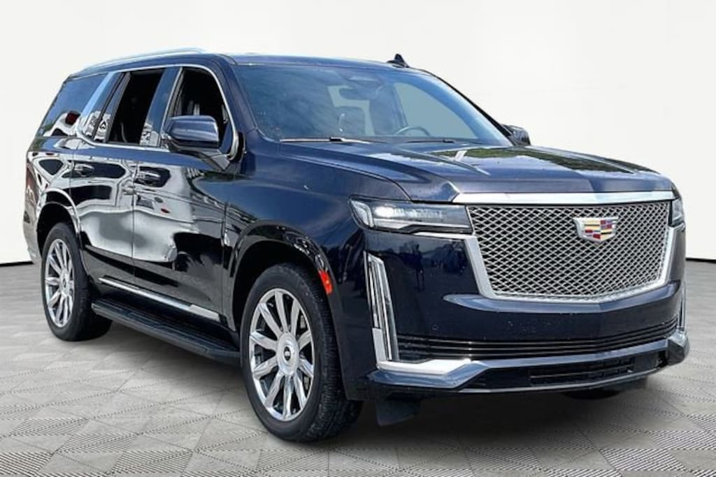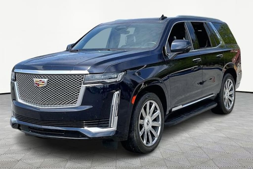 2021 Cadillac Escalade Premium Luxury Platinum RWD 10-Speed Automatic with Overdrive 6.2L V8 Dark Moon Blue MetallicJet Black Leather.THIS VEHICLE INCLUDES THE FOLLOWING FEATURES AND OPTIONS: Driver Assist Tech Package (Adaptive Cruise Control, Air Ride Adaptive Suspension, Automatic Seat Belt Tightening, Enhanced Automatic Emergency Braking, Illuminating Front & Rear Sill Plates, Reverse Automatic Braking, and Soft Closing Front & Rear Doors), Preferred Equipment Group 1SG (Air Ionizer, AKG Studio Reference 36-Speaker Audio System, Door Lock & Latch Shields, Electronic Limited-Slip Differential, Enhanced Automatic Parking Assist, Floor Console w/Covered Storage, Glass Breakage Sensor, Hitch Guidance w/Hitch View, In-Vehicle Trailering System App, Integrated Trailer Brake Controller, Lane Keep Assist w/Lane Departure Warning, Platinum Interior Trim, Power Panoramic Tilt-Sliding Sunroof, Rear Camera Mirror, Rear Camera Mirror Washer, Rear Cross Traffic Alert, Rear Seat Entertainment System, Reconfigurable Full-Color Head-Up Display, Running Board Assist Steps, Theft-Deterrent Alarm System, Trailer Side Blind Zone Alert, Vehicle Inclination Sensor, and Vehicle Interior Movement Sensor), Jet Black Leather, 16.9 Diagonal OLED Infotainment Screen, 2-Presets Memory For Driver Seat Adjuster, 3.23 Axle Ratio, 3rd row seats: split-bench, 4-Way Power Driver Lumbar Seat Adjuster, 4-Way Power Front Passenger Lumbar Seat Adjuster, 4-Wheel Disc Brakes, 8-Way Power Driver Seat Adjuster, 8-Way Power Front Passenger Seat Adjuster, A/V remote, ABS brakes, Adaptive suspension, Air Conditioning, Alloy wheels, AM/FM radio: SiriusXM with 360L, Apple CarPlay/Android Auto, Audio memory, Auto High-beam Headlights, Auto tilt-away steering wheel, Auto-dimming door mirrors, Auto-dimming Rear-View mirror, Automatic temperature control, Brake assist, Bumpers: body-color, Compass, Cooled Console w/Covered Storage, Delay-off headlights, Door auto-latch, Driver door bin, Driver vanity mirror, Dual front impact airbags, Dual front side impact airbags, Electronic Stability Control, Emergency communication system: OnStar and Cadillac connected services capable, Four wheel independent suspension, Front anti-roll bar, Front Bucket Seats, Front Center Armrest w/Storage, Front dual zone A/C, Front reading lights, Full Semi-Aniline Leather Seats, Fully automatic headlights, Garage door transmitter, Genuine wood console insert, Genuine wood dashboard insert, Genuine wood door panel insert, HD Radio, Headphones, Heads-Up Display, Heated & Ventilated Driver & Front Passenger Seats, Heated door mirrors, Heated Driver & Front Passenger Seats, Heated front seats, Heated rear seats, Heated steering wheel, Illuminated entry, Leather steering wheel, Low tire pressure warning, Magnetic Ride Control Suspension, Memory seat, Navigation System, Occupant sensing airbag, Outside temperature display, Overhead airbag, Overhead console, Panic alarm, Passenger door bin, Passenger vanity mirror, Power door mirrors, Power driver seat, Power Liftgate, Power Lumbar Massage Driver Seat, Power Lumbar Massage Front Passenger Seat, Power moonroof, Power passenger seat, Power steering, Power windows, Puddle Lamps w/Cadillac Crest (LPO), Radio data system, Radio: AM/FM/SiriusXM w/Navigation, Rain sensing wipers, Rear air conditioning, Rear anti-roll bar, Rear audio controls, Rear reading lights, Rear window defroster, Rear window wiper, Remote keyless entry, Roof rack: rails only, Security system, SiriusXM w/360L, Speed control, Split folding rear seat, Spoiler, Steering wheel memory, Steering wheel mounted audio controls, Tachometer, Teen Driver, Telescoping steering wheel, Tilt steering wheel, Traction control, Trip computer, Turn signal indicator mirrors, Variably intermittent wipers, Ventilated front seats, Voltmeter, Wheels: 22 10-Spoke Polished Alloy, and Wireless Apple CarPlay/Wireless Android Auto.**MOST VEHICLES COME WITH A LIFETIME POWERTRAIN WARRANTY AT NO AD